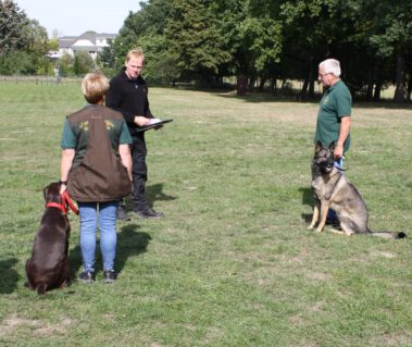 Weiter ging es dann auf unserem Vereinsgelände, mit den vier 2er Gruppen zur Begleithundeprüfung in verschiedenen Schwierigkeitsgraden