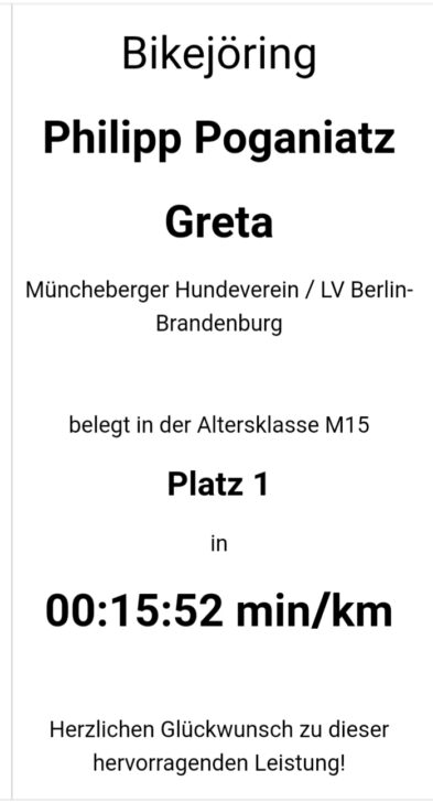 Der Landesverband Berlin – Brandenburg rief unter dem Motto „Fit in die Turnierhundesportsaison 2021“ alle Hundesportler auf, beim Biken, Scootern oder Joggen mit seinem Hund fleißig Kilometer zu sammeln. Anika hat gemeinsam mit ihren Kindern Philip und Pauline an der Challenge teilgenommen. Sie trugen mit dazu bei, dass der Landesverband in der Auswertung im Februar mit 4.417,9 Kilometern den Gesamtsieg errungen hat.