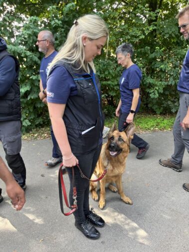 Unsere Vorsitzende, Angela, führte als Prüfungsleiterin, routiniert und zugewandt durch den Tag. Besonderen Dank an dieser Stelle gilt den Trainern für die Vorbereitung der Starterteams auf die Prüfungen und dem Vorstand unseres Vereins, der im Vorfeld engagiert und geduldig viele kleine und große Dinge erledigte. Außerdem möchten wir uns recht herzlich für die Zurverfügungstellung des Fährtenackers bei Herrn Lindner von der Agrargesellschaft Müncheberg mbH, der Nutzung der angrenzenden Wiese als Parkplatz bei Schäfermeister Hahnel und der Firma Belcando sowie der Tierärztin Frau Dr. Krüger für die Sachspenden bedanken.